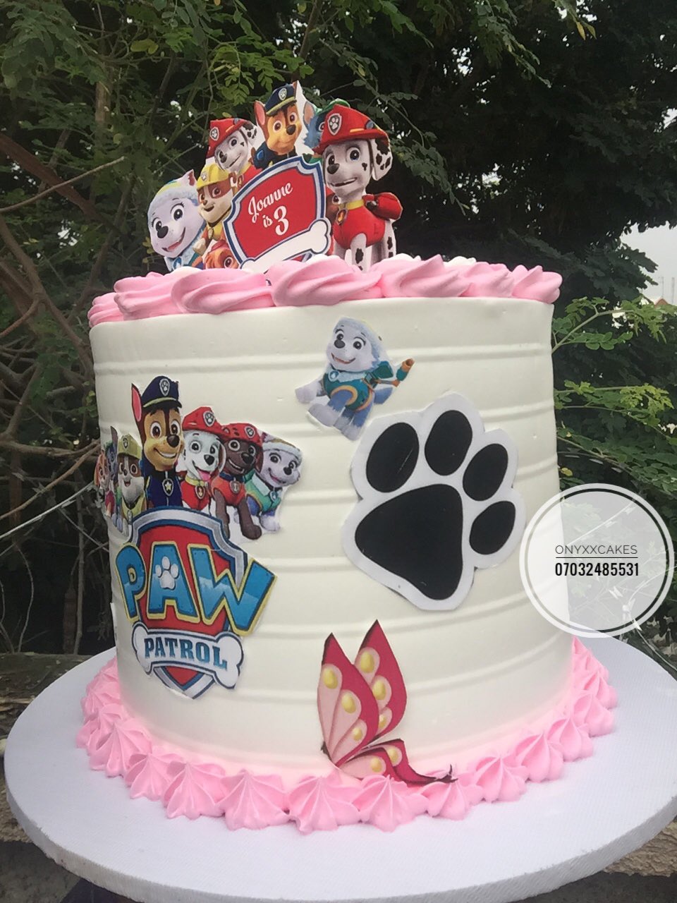 Onyxx Cakes On Twitter Hello And Happy New Week Paw Patrol Themed Cake For A Baby Girl Who Turned 3 Last Week Whipped Cream Frosting Banana Red Velvet And Chocolate Cake Flavors